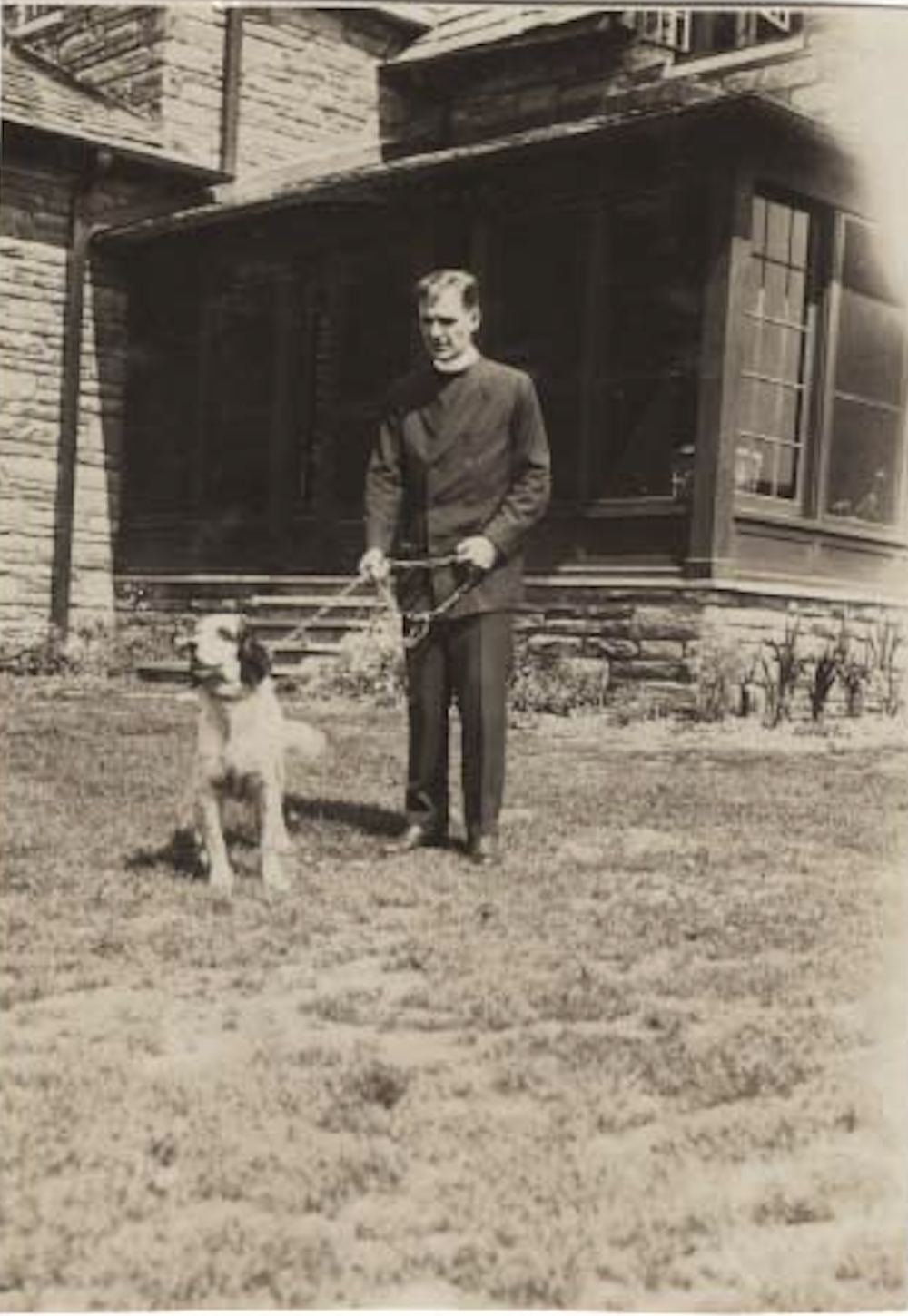 Walden Pell II with his dog Rex, outside of the Headmaster's House.