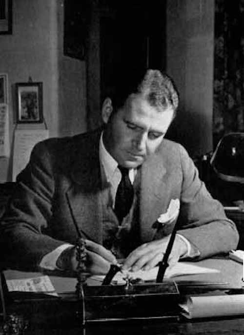 Walden Pell II in his office. This photo was collected by Edith Pell and is located in the second of her Scrapbooks.