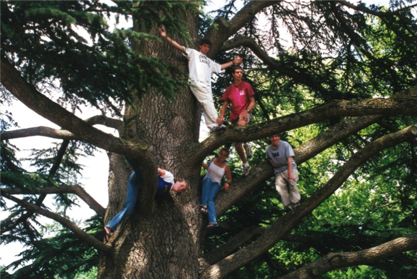 Kaitlin Bear '01, Richard Hutton '01, Jon Eisenbrey '01, Clementine James '01 and Ben Harney '01 go out on a limb.