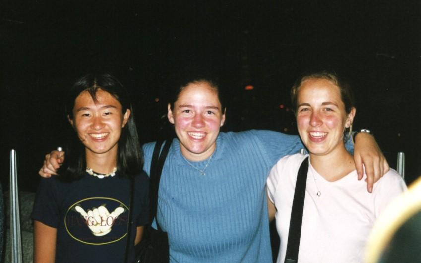 Wenjun Jing '01, Elizabeth Ross '01 and Cordo Carraher '01 on top of the Arc de Triomphe in Paris, France.