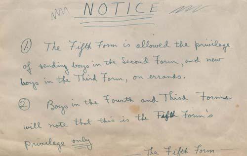 This sign was made by students advertising the sale of the first St. Andrew's School yearbook in 1937, and saved by Edith Pell in her first Scrapbook.