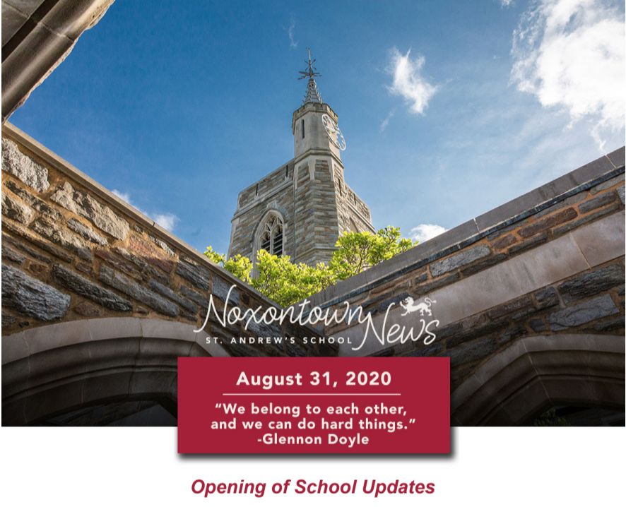 This edition of Noxontown News opened with a letter from Headmaster Tad Roach. He gave a detailed reflection on the state of the school, given the herculean task of safely transitioning 300+ students into residential learning...