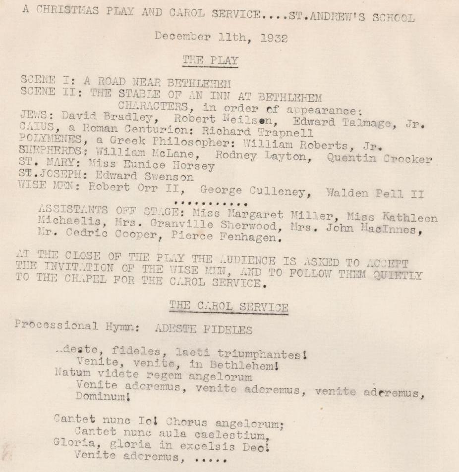 Presented by St. Andrew's School. Produced by special arrangement with Samuel French Inc. and Pioneer Drama Service. Master of Ceremonies: Andrew Butters and Thad McBride...